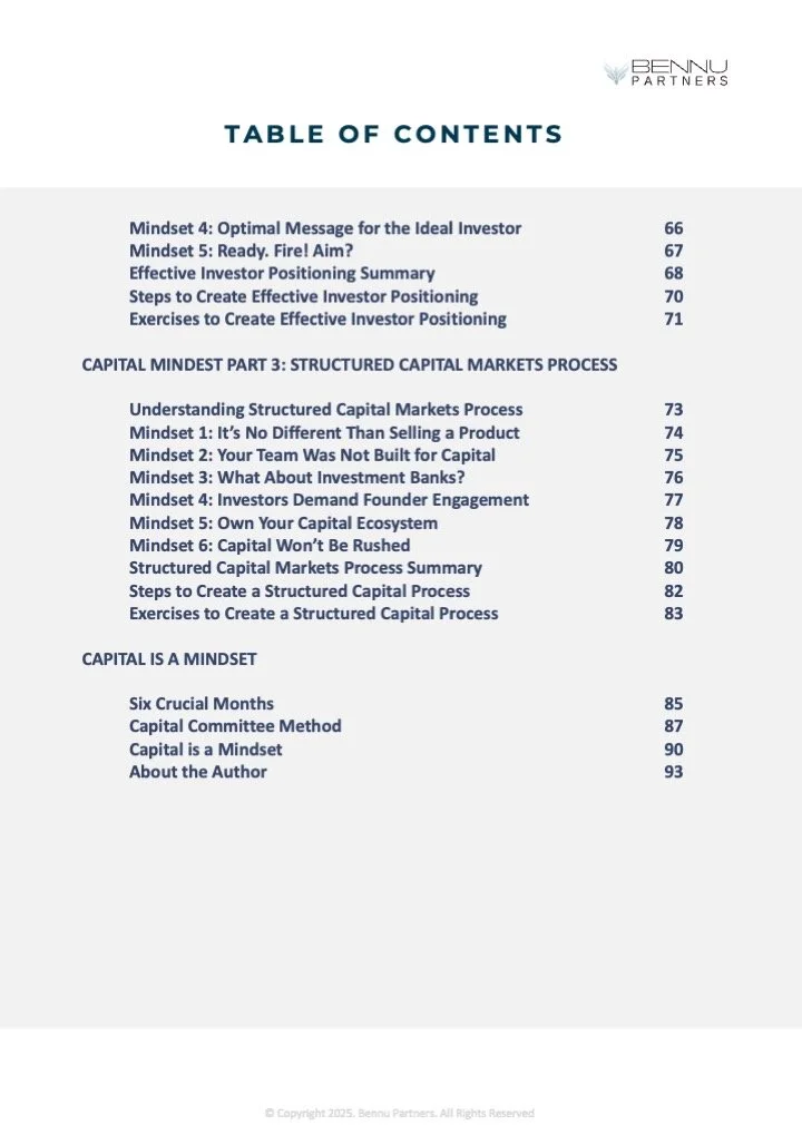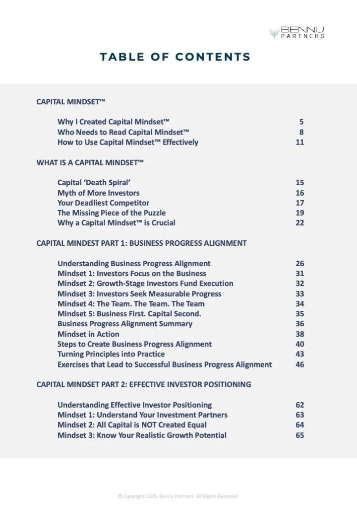 Knowledge is power. Understanding the investor’s Capital Mindset™ will power your business forward. The Mindset is your advantage.